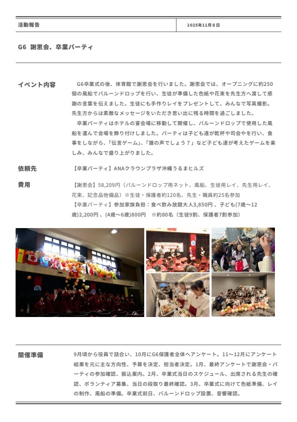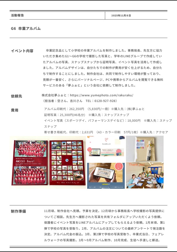 2024年度G6卒業年度の活動報告(卒業アルバム作成&謝恩会&卒業パーティー)